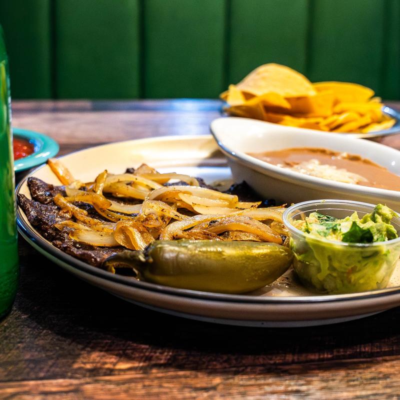 Grilled skirt steak cooked with onions, lime, jalapeño, and guacamole. Served with corn or flour tortillas. Served with beans