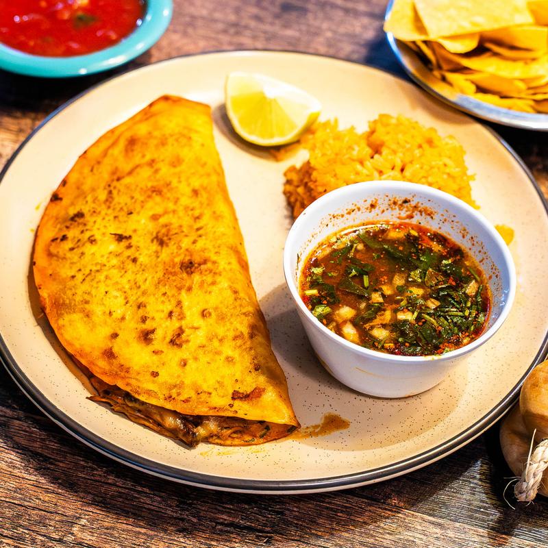 Golden, cheesy, and full of flavor our quesadillas are folded to perfection, then grilled until the tortilla is lightly crisp and the cheese is melty and irresistible. Each plate comes with rice or beans